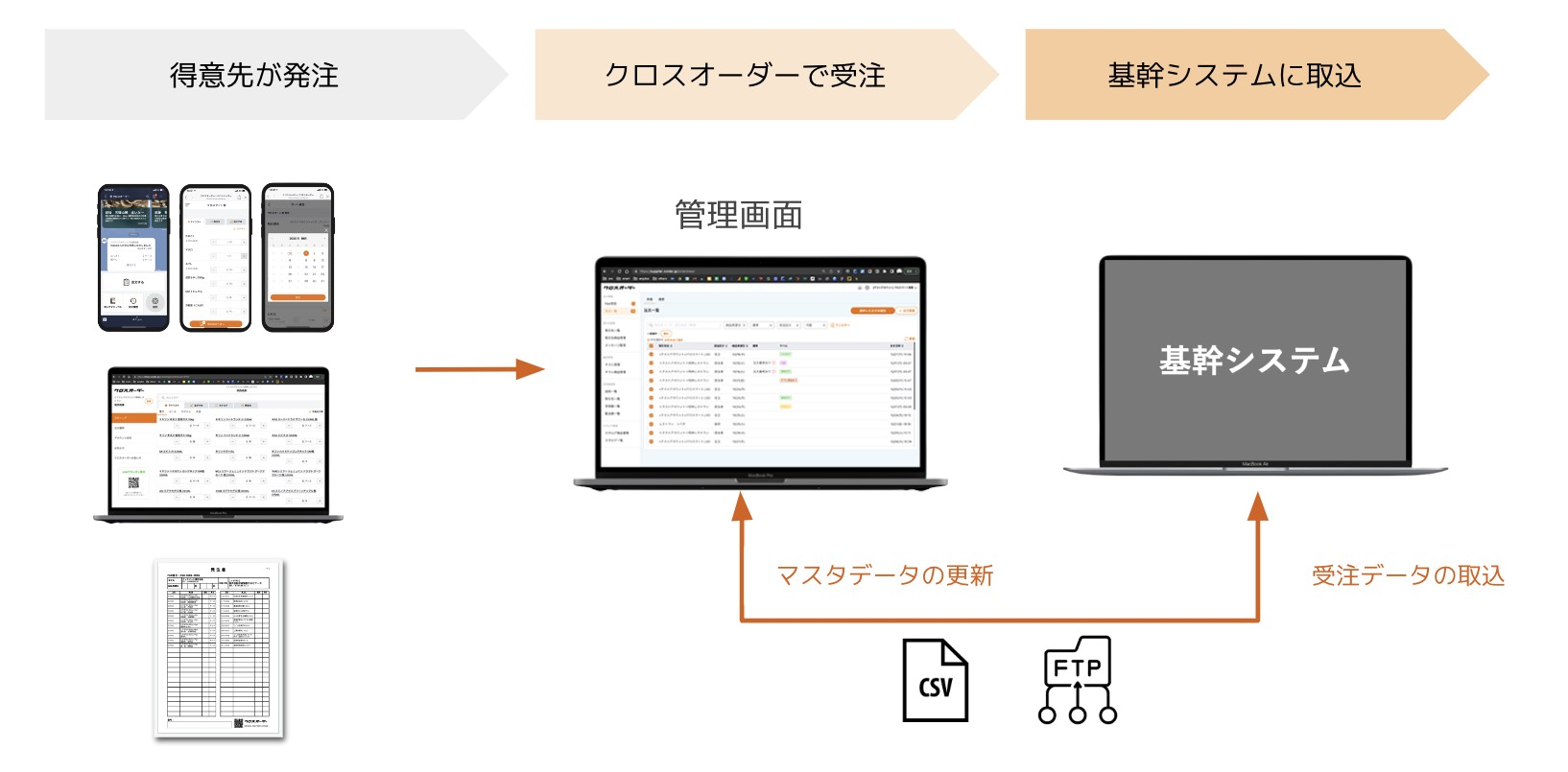 - 受発注(FAX,電話)に伴う紙管理に負担があり販売管理システムへ転記する手間も発生